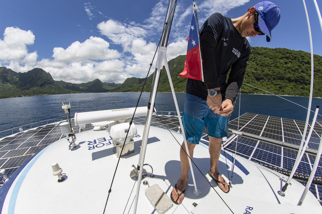 Anne Le Chantoux, sailor, describes the last fortnight spent at sea: “The journey from Papeete was calm and very hot! Temperatures reached 40° on some days. Weather conditions were excellent with wind enabling us to optimise use of the kite and sunshine to charge our batteries. The kite meant we were two days ahead of our initial schedule, but in reality it was only one day as we switched time zone meaning we were 24 hours ahead! As such, we went from Tuesday 20 to Wednesday 21 in the space of a minute. It upset more than one of us aboard I can tell you… especially with regards to the household tasks! As a result, we’re missing a day from 2018: Wednesday 21 November! Fortunately there weren’t any birthdays to celebrate that day!?”