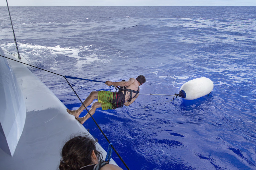 The captain, Jean-Marc Normant, regularly organises exercises with a view to maintaining the crew’s vigilance and know-how in the event of technical or human problems. On this latest delivery trip between Tahiti and the Samoan Islands, there has been a succession of simulations: leak, man overboard as well as heart massage, recovery position, etc. Rehearsing the actions and gestures on a regular basis and knowing how to implement them in a wise and composed manner at the right time is essential when you live in a confined space in the middle of the oceans, often a long way from the coast.