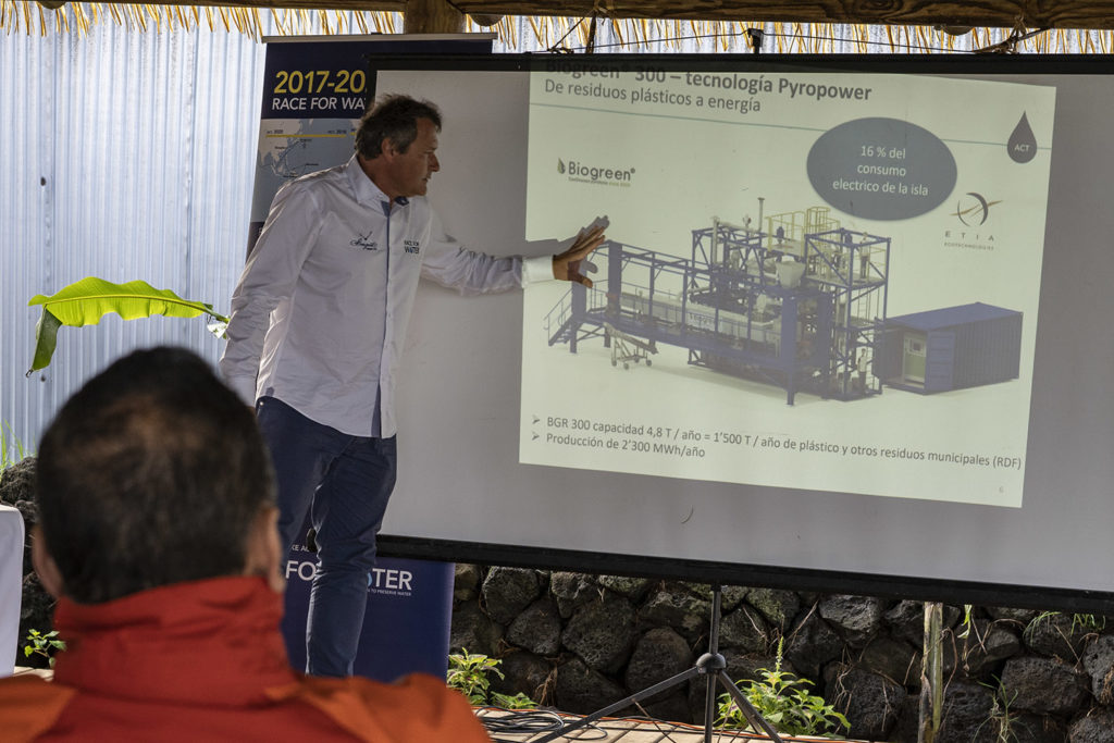 Easter Island, which from Friday 31 August is playing host to the Race for Water vessel and its teams for ten days, ranks among the Foundation’s key sites in terms of the implementation of the Biogreen solution, which enables the optimum conversion of all types of plastic waste into electric power.