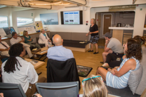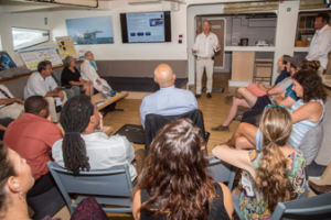 Race for Water Foundation president Marco Simeoni noted, “This meeting on board Race for Water was a rousing success, bringing together Sylvan Richards–Bermuda’s Minister of Environment and Planning, industry representatives, engineers, and local NGOs. These results have definitely motivated us to organize more sessions like this one!” One of the Foundation’s missions is to initiate a multi-stakeholder dialogue on plastics pollution, and then, to spark a movement—encouraging these stakeholders to work together to find solutions.