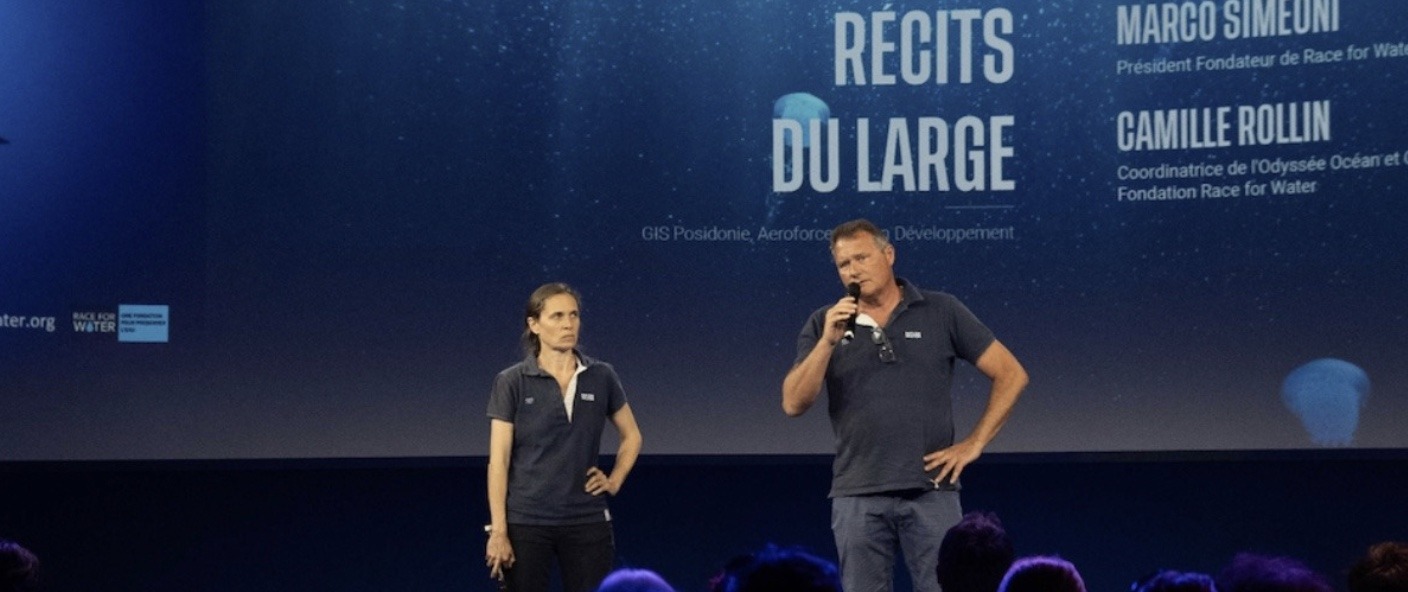 On Tuesday, June 3, the Foundation was invited to participate in the conference series “Tales from the Open Sea : Voices of the Ocean Wonders.” Marco Simeoni, President and Founder of Race For Water, and Camille Rollin, Coordinator of the Ocean and Climate Odyssey, shared their commitments through the story of the Foundation and presented the new ambassador vessel, currently in Nice on the Posidonia mission for the Ocean and Climate Odyssey.
