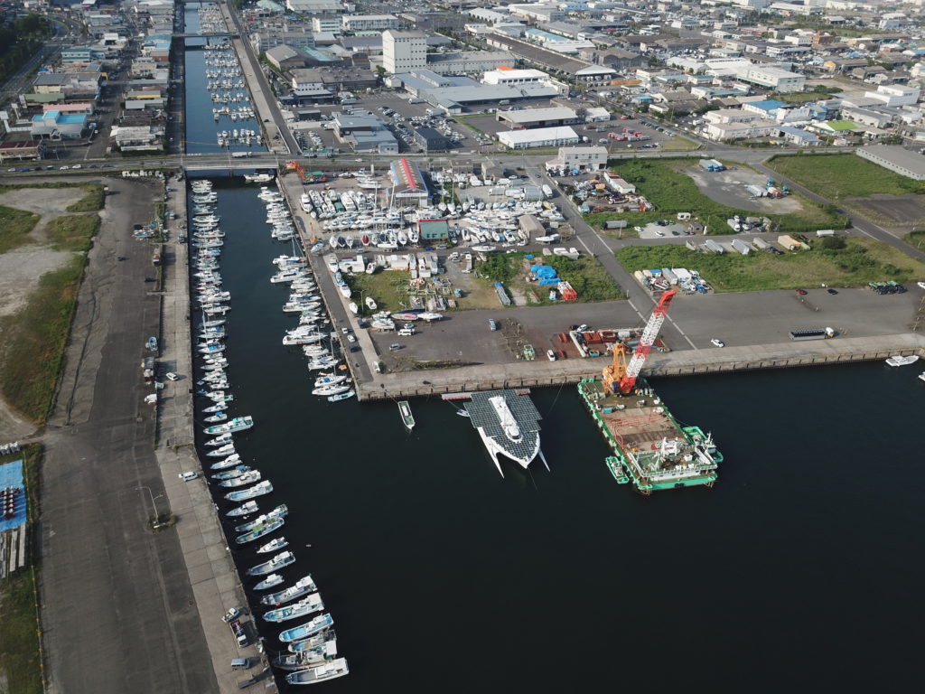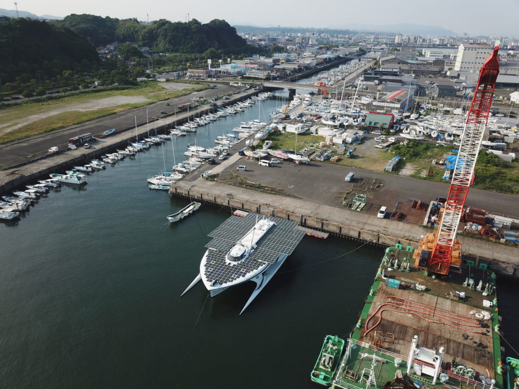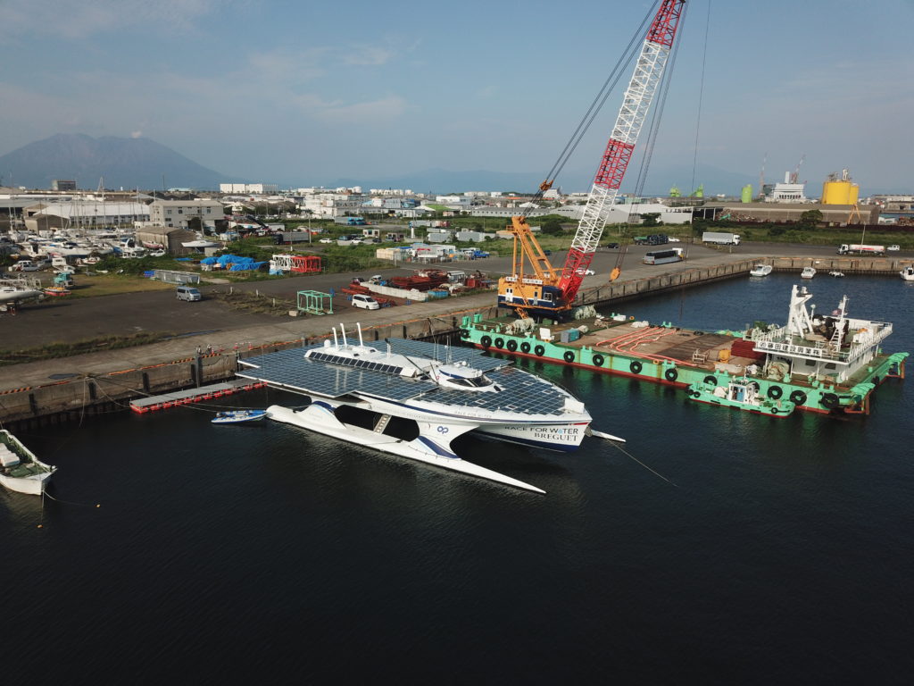 While waiting to resume the course of the odyssey, Race for Water is moored at the pontoon in Kagoshima, a city overlooked by the Sakurajima volcano and located on the island of Kyūshū, about 965 km, as the crow flies, southwest of Tokyo, the capital of Japan.