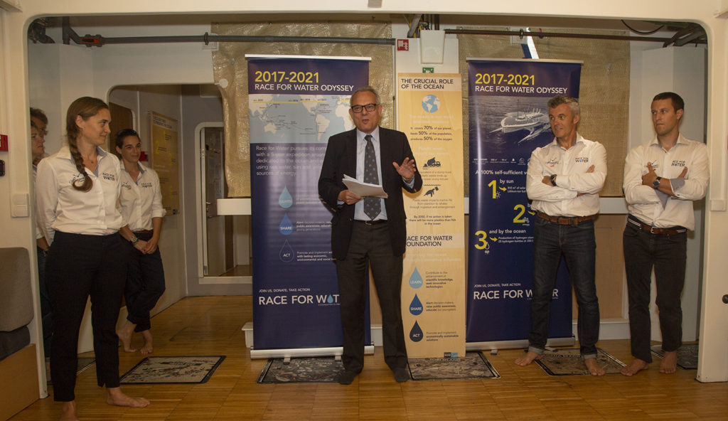 Today’s official press conference was hosted by Camille Rollin, Race for Water Act Programme Manager, and welcomed on board Mr. Leo Poon, Vice President of Breguet Hong Kong, Mr. Reto Laederach, Acting Consul General at the Consulate General of Switzerland and Mr. Richard Wesley, Hong Kong Maritime Museum Director as well as other local community players and officials.