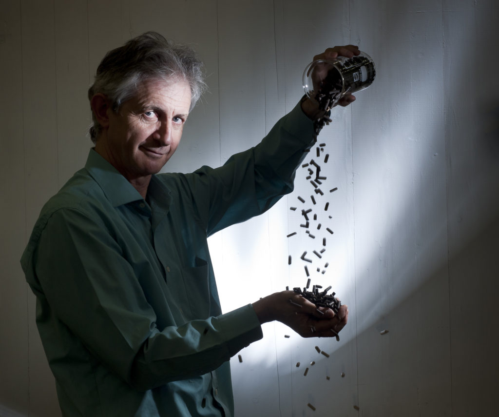 - Jean-Bernard Michel, professeur à la Heig-vd d’Yverdon – 12.03.2011 – tenant des pelets de bois torréfiés permettant d’alimenter des chaudières pour générer chaleur et électricité – heig-vd, Av. des sports 20, Yverdon ©Thierry Porchet / image21.ch