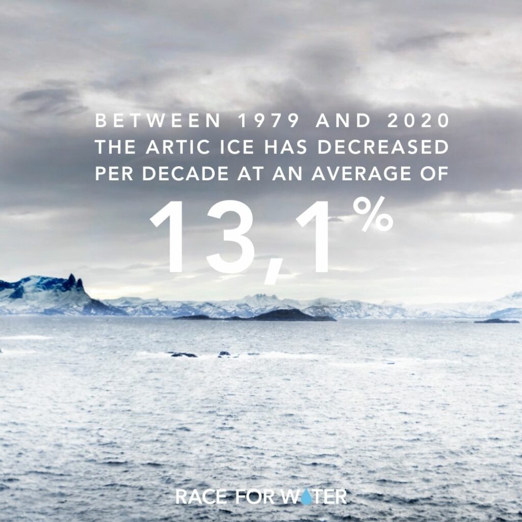 - Between 1979 and 2020, the Arctic ice pack shrank by an average of 13.1% per decade (NSIDC, NASA).