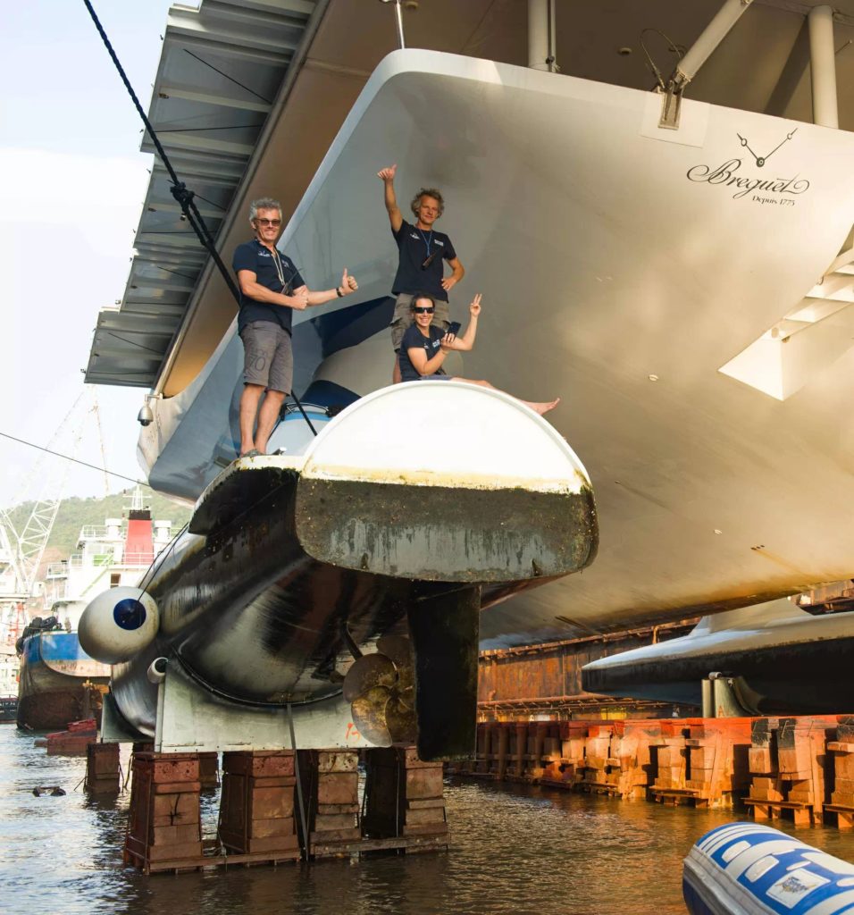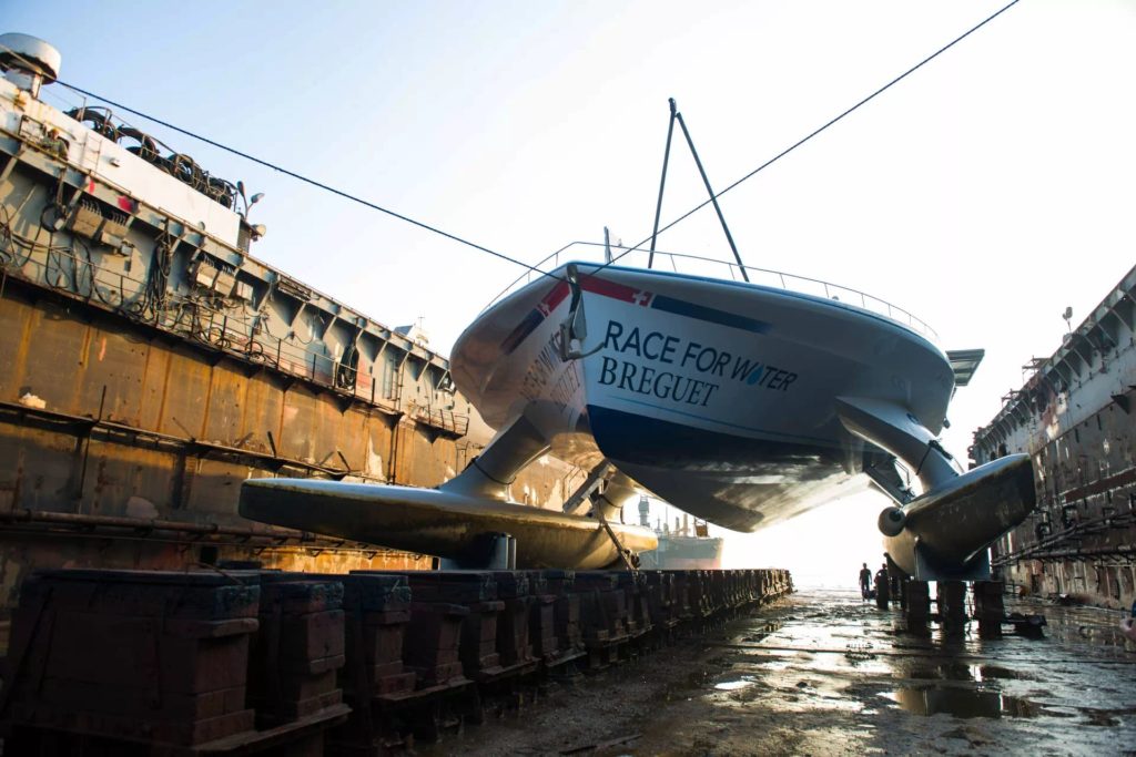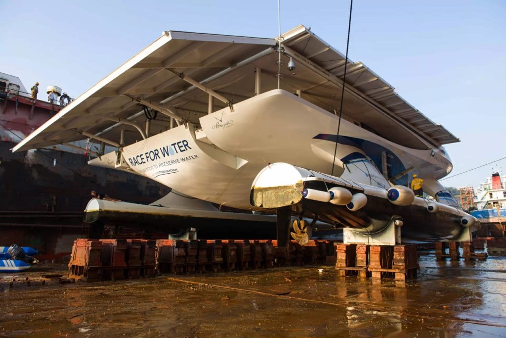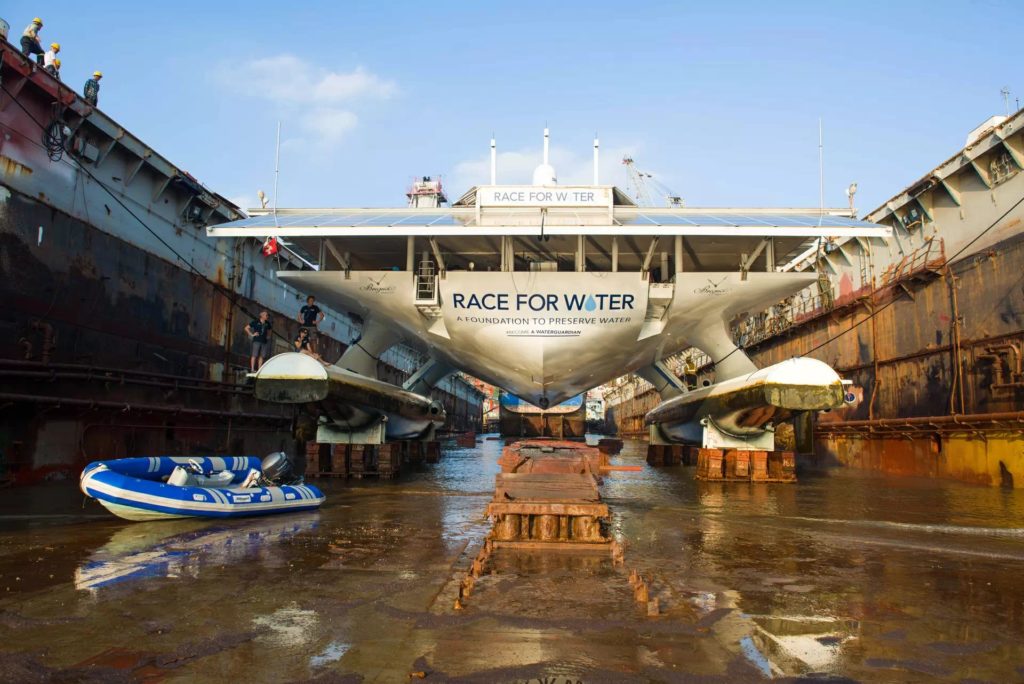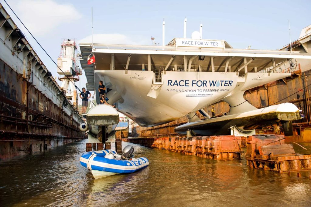 “So we are beginning an important phase for our boat Race for Water. Indeed, every two years, we have to apply a fresh coat of underwater paint and carry out different periodic checks such as inspecting the propeller shafts, ensure the smooth operation of the rudders, check the general condition of our heat exchangers; these are radiators that are in contact with the sea and which allow us to cool our electrical systems.