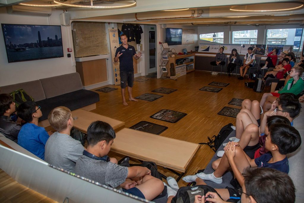 Guests, children and members of the public have been getting guided tours and presentations with Virginie Caron, the stopover manager and members of the sailing crew including the on board engineer, Basil Prime, the technical crew person Anne Le Chantoux, second in command, Erwan Lohezic, steward Christel Brigeot-Mathieu and Captain Jean Marc-Normant.