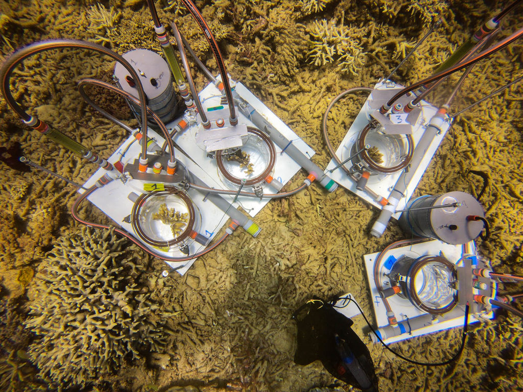 - The study of in situ ingestion of microplastics via 2 species of corals.In conjunction with this first activity, 8 days of experimentation will be carried out via scuba diving with the in situ incubation of 4 benthic chambers on each of the 2 sites. In this way, three benthic chambers will be put in place and two different species of coral will be incubated in these chambers, in which suspended microplastics will be injected. These three chambers will be compared to a control chamber not containing a coral colony.