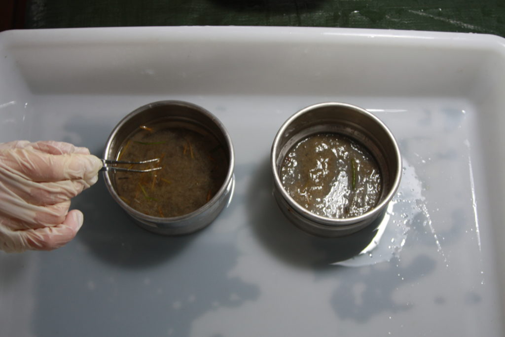 - The content of the sieve was then transferred into a sample bottle and preserved in the fridge using a funnel, tap water and 70% ethanol. The use of 70% ethanol (or formalin) is important to preserve the sample as it discolor the organisms and colors plastics making it easier to find during microscope analysis.