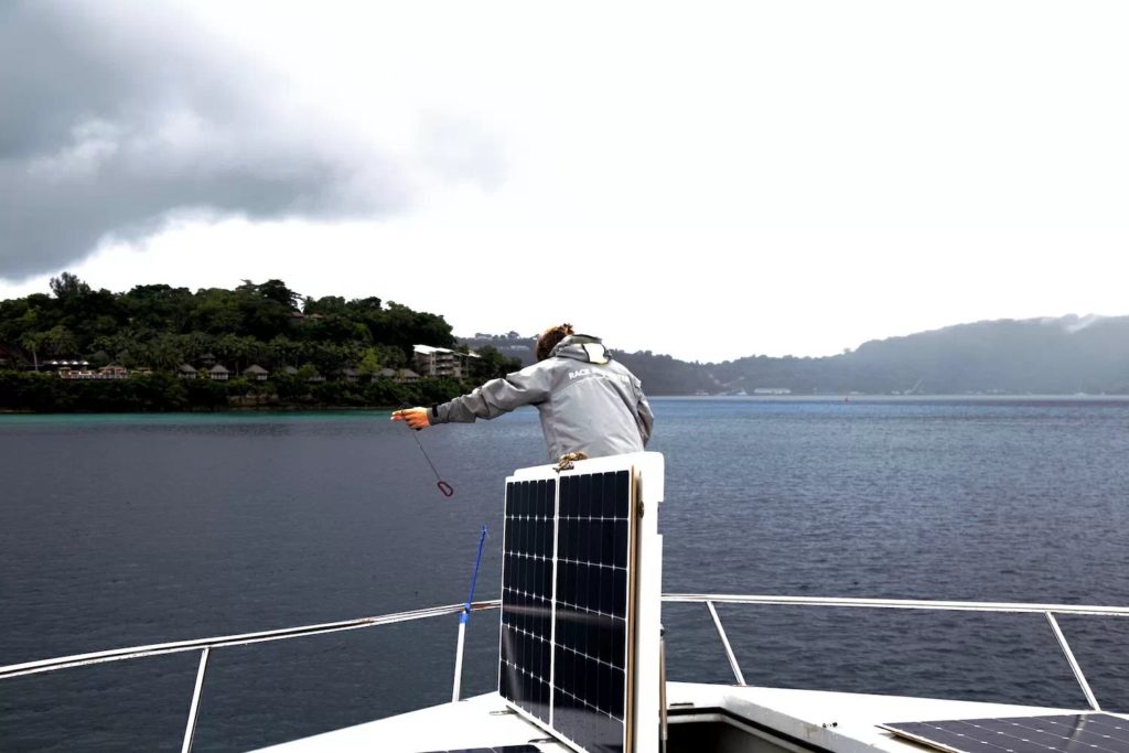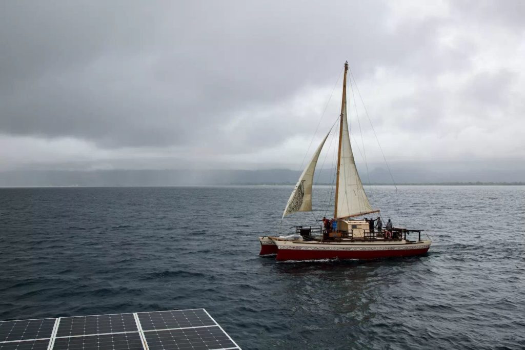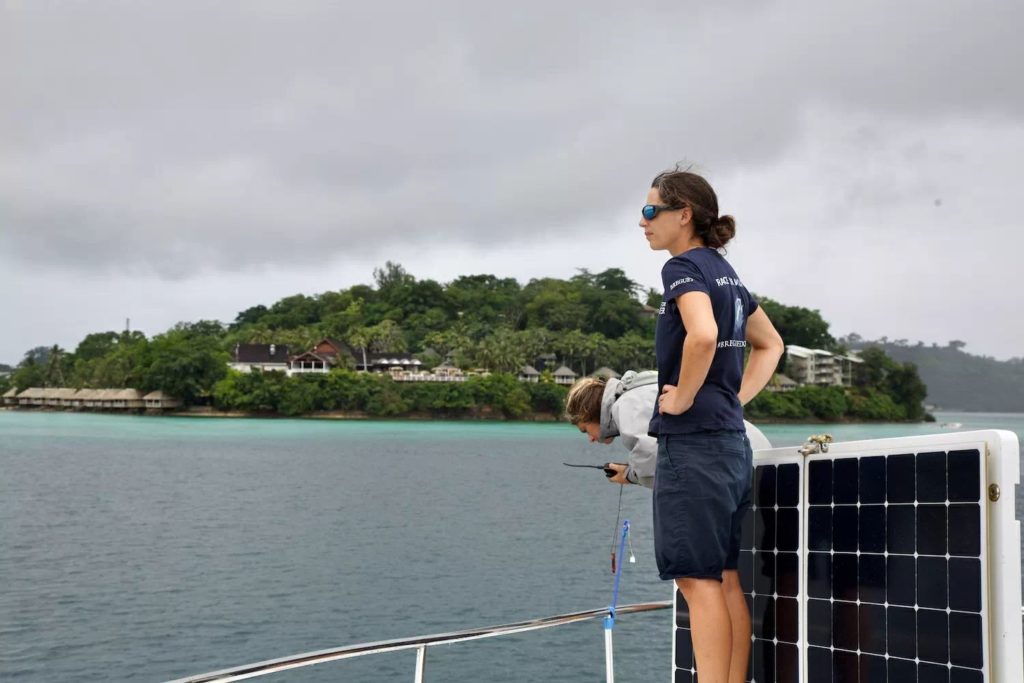 Despite leaving under grey skies, we were well escorted by the Pacific’s traditional sailing canoe of Okeanos Vanuatu for a few miles.