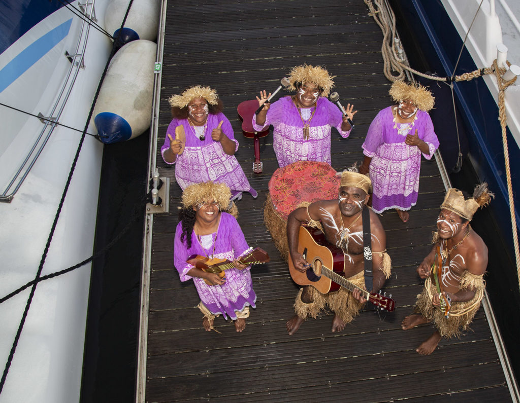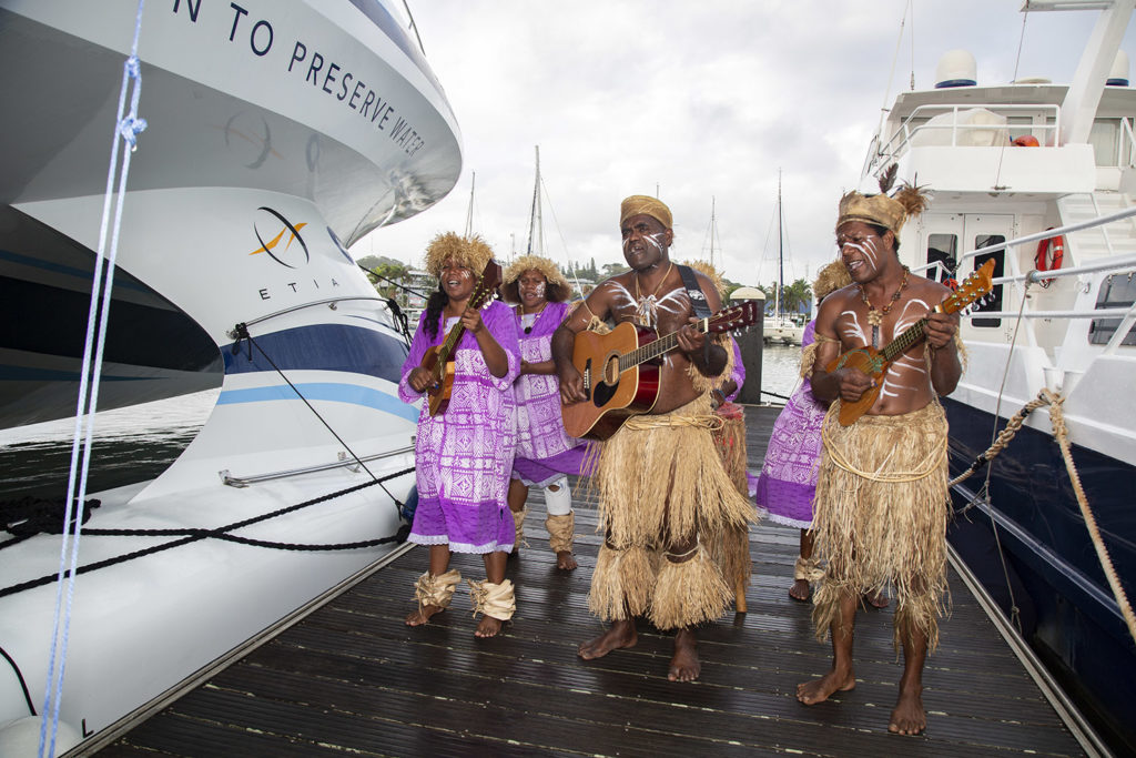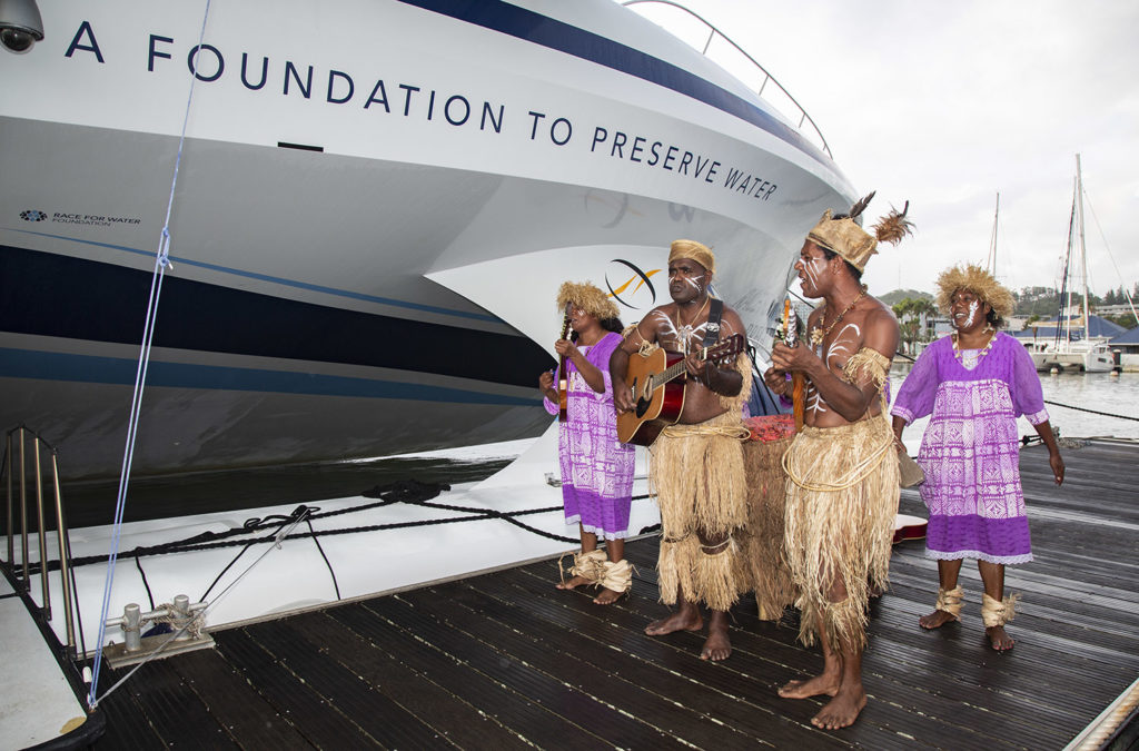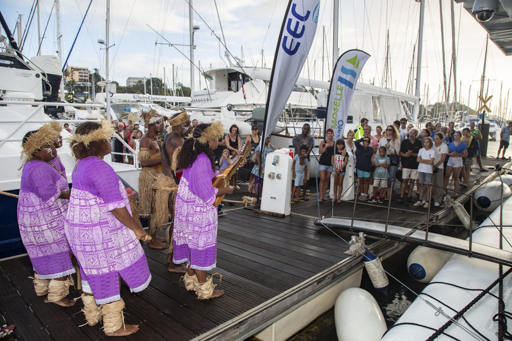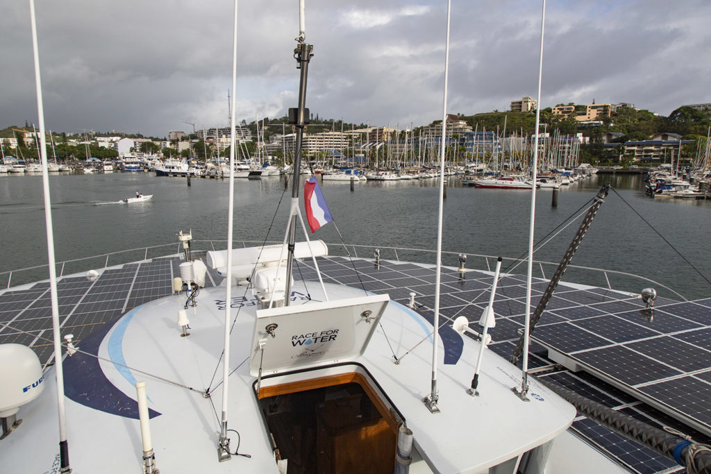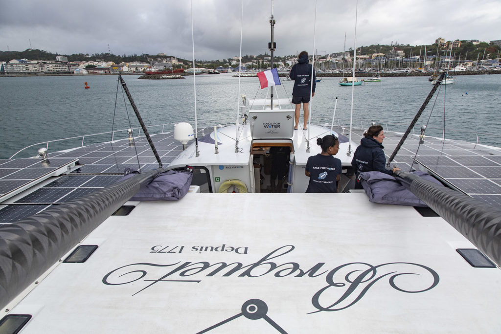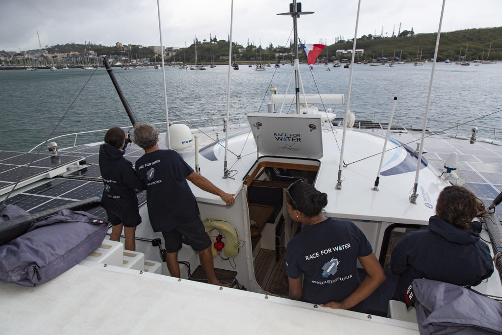 Race for Water and her crew (Annabelle Boudinot, second in command - Anne Le Chantoux, sailor - Margaux Chalas, steward - Basile Prime, engineer - Pascal Morizot, Captain) has just moored in Port Moselle (Nouméa), with a rousing welcome from a large crowd and the We Ce Ca group.