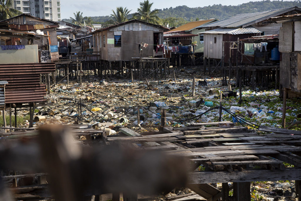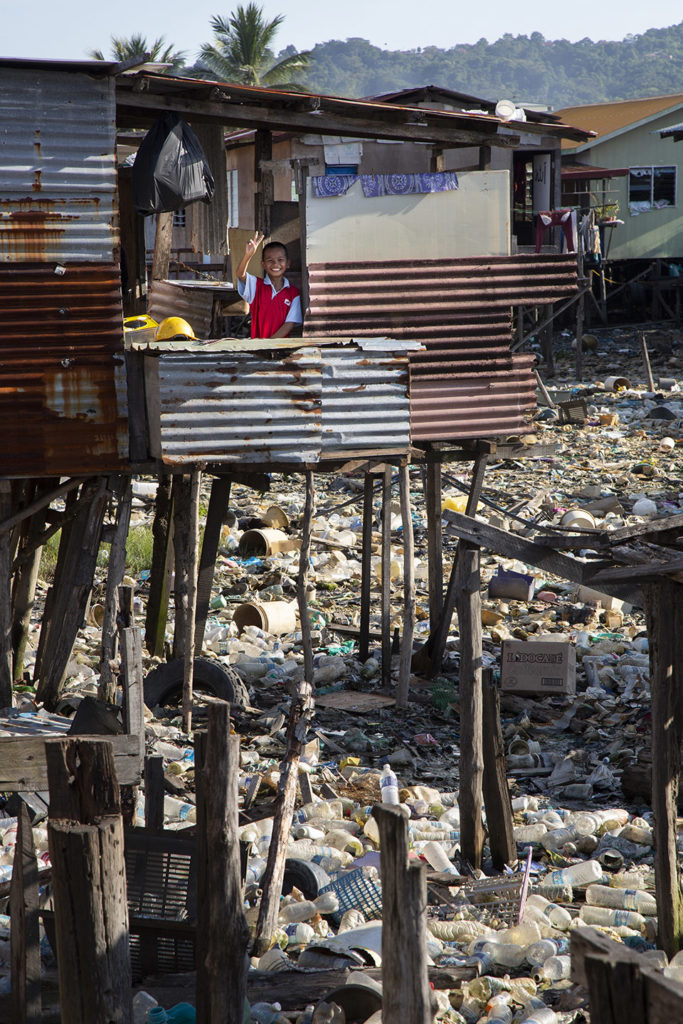 Typically, plastic pollution has taken on dramatic proportions in some places. The island of Gaya located opposite the capital Kota Kinabalu is the perfect example. On a tiny territory of 15 km2, luxury resorts have sprung up beside villages on stilts built by Filipino fishermen driven out by the Moro rebellion in the early 1980s. These villages have no access to drinking water and no waste collection system. Plastic bottles make up a large part of the heaps of plastic packaging that the community, for want of a better solution, dumps straight into the water. Added to this, due to the flow of currents, is the waste that arrives by sea from Kota Kinabalu.