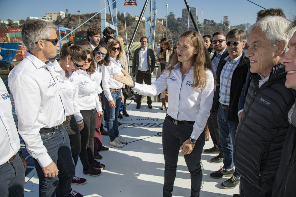 Chilean President, Mr Sebastian Pinera, four of his ministers and Messrs Gunter Pauli and Marco Simeoni take part in a working session aboard R4WO.