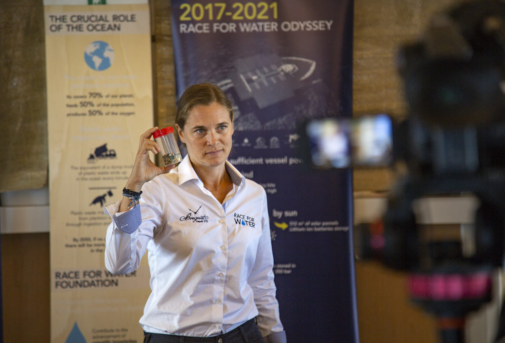 Hon. Minister Semi Koroilavesau, Minister for Fisheries, Cynthia Rasch, General Manager of Point Denarau Marina, Andrew Paris, scientist at the University of the South Pacific and Camille Rollin the Race for Water Foundation Project Manager outlined the importance of joint collaboration to tackle the complex issue plastic pollution raises in island communities.