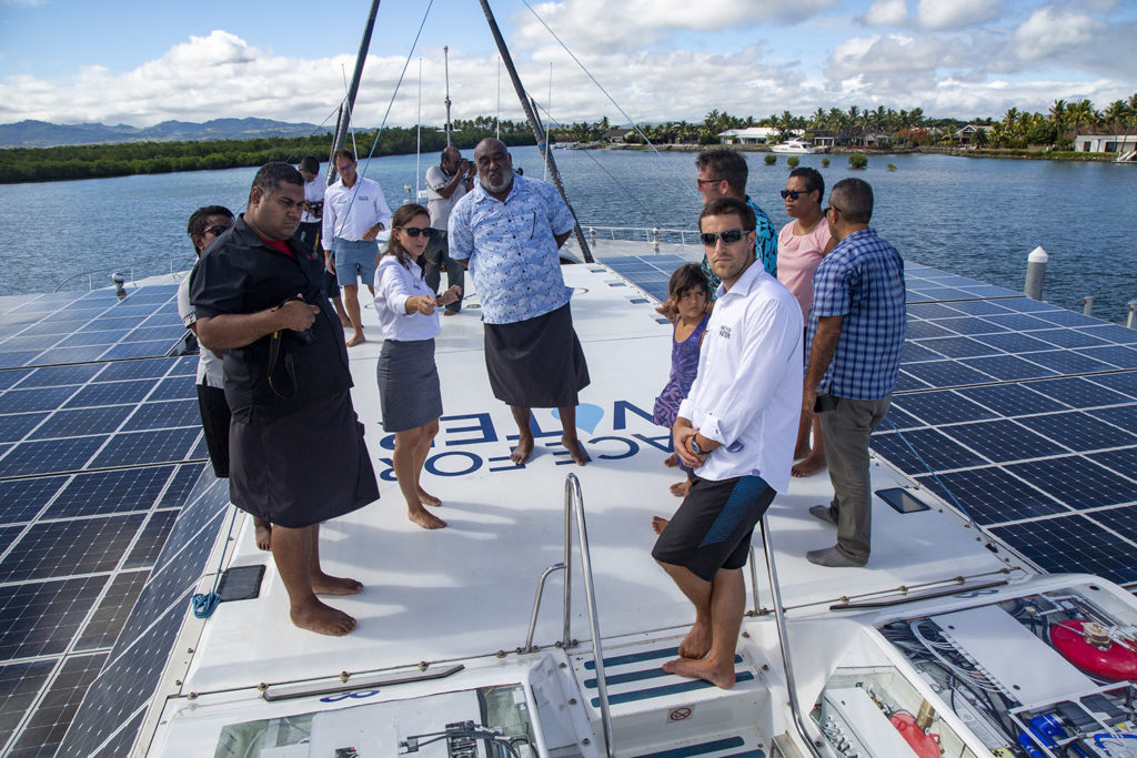 The 114-foot vessel, which is the world’s largest solar powered catamaran, hosted authorities and guests on board today for the official welcome and will remain in Fiji until the 19th of January.