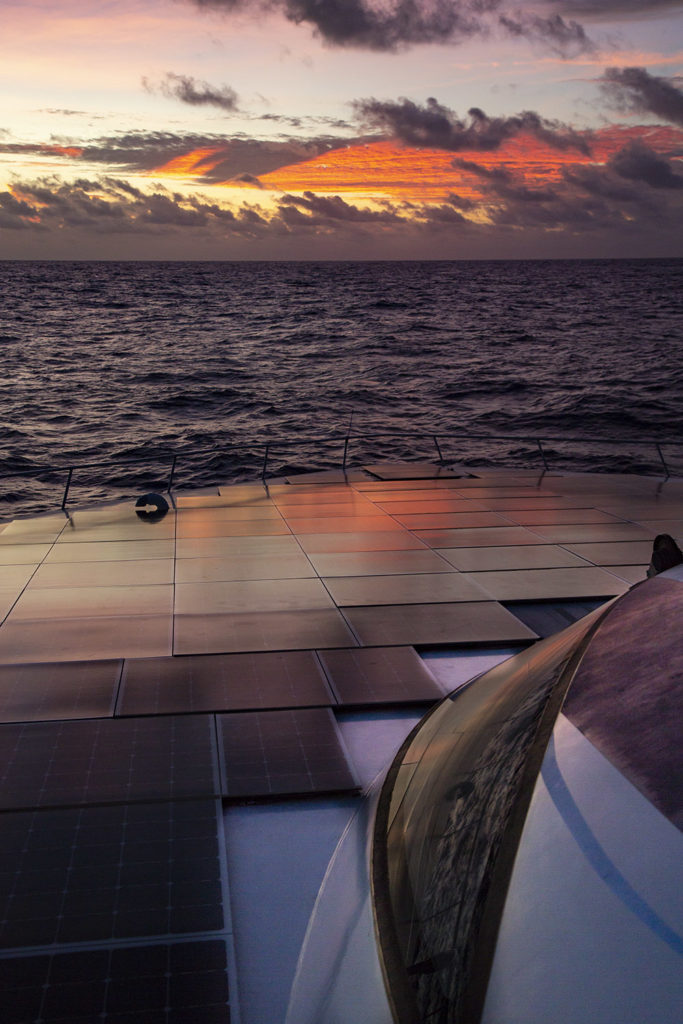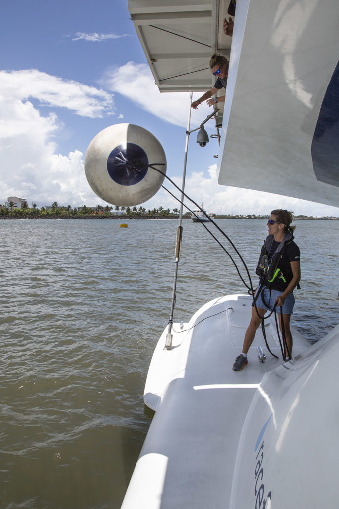 Anne Le Chantoux, sailor, describes the last fortnight spent at sea: “The journey from Papeete was calm and very hot! Temperatures reached 40° on some days. Weather conditions were excellent with wind enabling us to optimise use of the kite and sunshine to charge our batteries. The kite meant we were two days ahead of our initial schedule, but in reality it was only one day as we switched time zone meaning we were 24 hours ahead! As such, we went from Tuesday 20 to Wednesday 21 in the space of a minute. It upset more than one of us aboard I can tell you… especially with regards to the household tasks! As a result, we’re missing a day from 2018: Wednesday 21 November! Fortunately there weren’t any birthdays to celebrate that day!?”