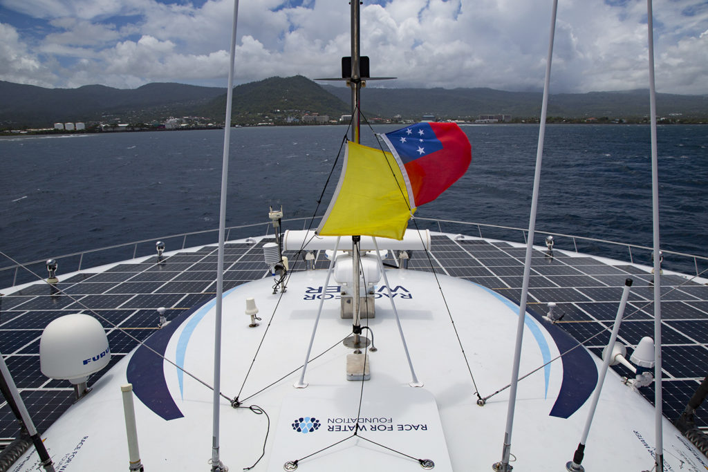 Having set sail from Tahiti on 9 November, the Race for Water Foundation’s ambassador vessel has just tied up in the port of Apia, the capital city of the Samoan Islands, for an eight-day stopover – the 12th of this latest odyssey.