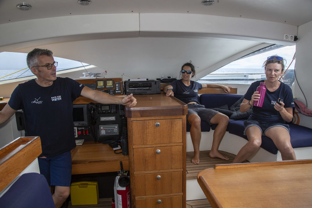 The captain, Jean-Marc Normant, regularly organises exercises with a view to maintaining the crew’s vigilance and know-how in the event of technical or human problems. On this latest delivery trip between Tahiti and the Samoan Islands, there has been a succession of simulations: leak, man overboard as well as heart massage, recovery position, etc. Rehearsing the actions and gestures on a regular basis and knowing how to implement them in a wise and composed manner at the right time is essential when you live in a confined space in the middle of the oceans, often a long way from the coast.