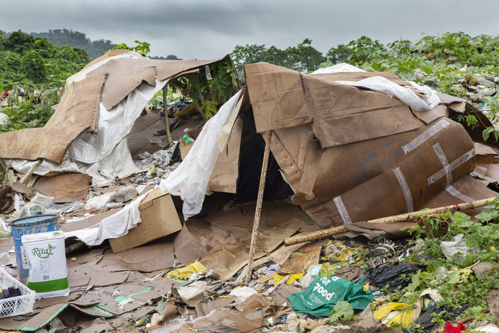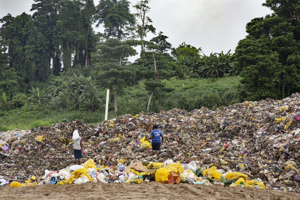 We went to see it. Located a few kilometres from the city centre and served by a track, it spreads over 48 ha. In 2006, the uncontrolled site was made official and a Japanese company invested in this dump. Currently only 15% of the total area is exploited and between 50 and 60 collectors live there. We find the yellow bags (household waste) sold by the town hall to finance the collection of rubbish, boxes of supermarket packaging, household appliances, tires and hospital waste, the incinerator has been out of operation for several months… Leachate (liquid that comes from landfill waste) is not recovered, waste flies away with the wind and no sorting is done. On the positive side, the view of the lagoon is beautiful.