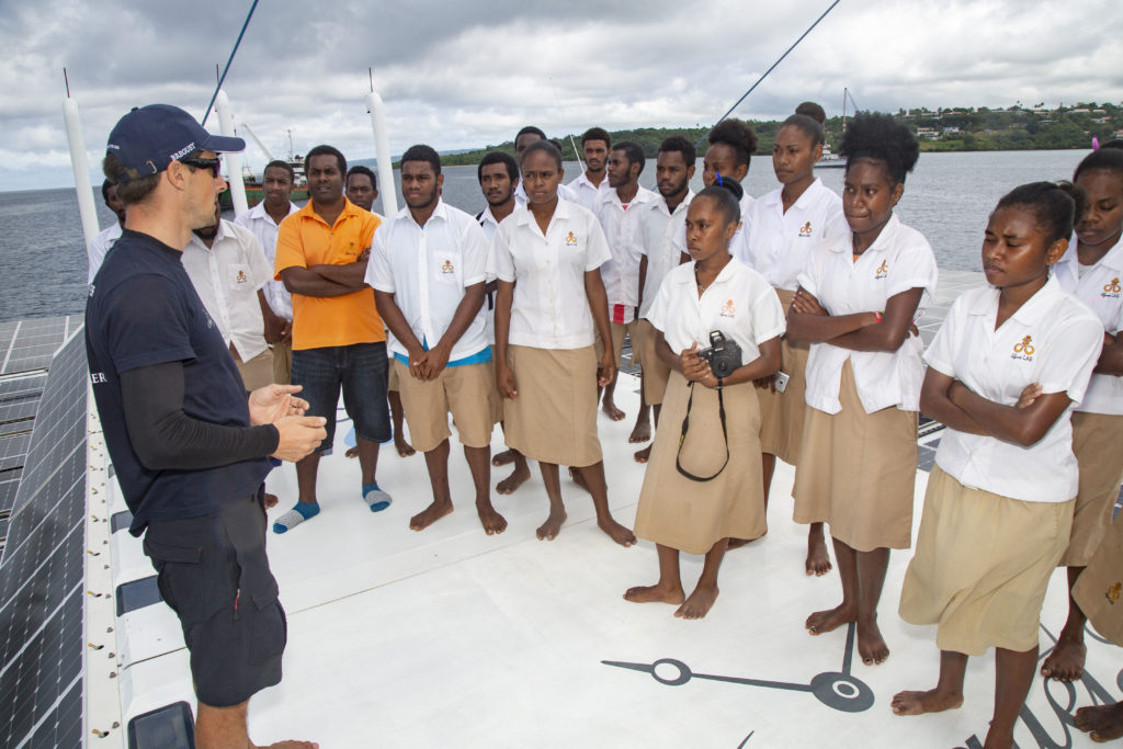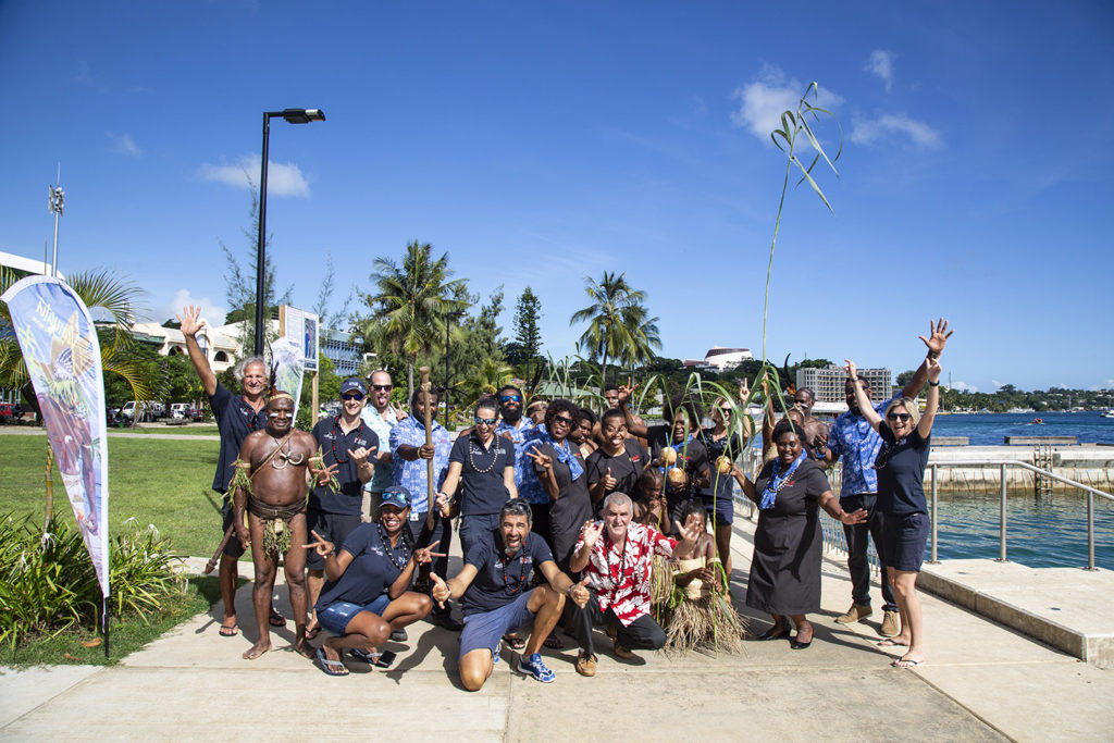 Race for Water set its sights from April 3rd to 14th, 2019 on Efate (the fourth largest island) and more specifically on Port Vila, one of the two cities of Vanuatu. A whole group of dancers dressed in traditional clothes was waiting for us on the dock to welcome us. Fresh coconuts and necklaces made from seeds and shells were offered to us. An exchange is customary, and in turn we offered them our modest presents. To our surprise not two but three languages coexist: French, English and Bichelamar, the latter being the common language.