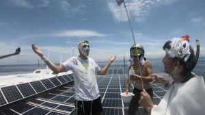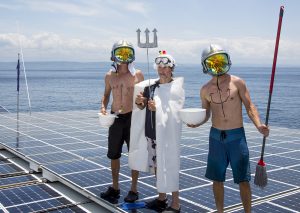 This was done on 7 March 2018 aboard Race For Water with the blessing of the god Neptune, who then allowed the captain to set sail once more on his solar vessel bound for Peru, cradle of the Incas who worship the star by the same name.
