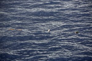 The waters of the Caribbean sea look more grey than blue today, with the threatening sky casting a yellow tint across the waves. Through the soupy fog, we can just make out the coast, on the horizon. We’re the only boat on the water, with the exception of two small fishing boats. There’s not a single cargo ship, oil tanker, or cruise ship. Our AIS real-time ship tracker is empty and silent. But we’re not alone; amid the long brown fronds of sargassum seaweed, there’s more and more debris: bottles, plastic, pieces of white polystyrene. They’re a sign that we’re nearing civilization, even if we can’t see it yet.