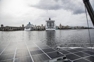 We even took advantage of a thunderstorm to give the solar panels and pontoons a wash. But that storm also flooded the streets of Havana, washing garbage from tourists and locals alike directly into the bay. Within half an hour, a flotilla of plastic bottles, sandals, and other trash surrounded Race for Water at her mooring—clear evidence that there are not enough recycling plants in Cuba.