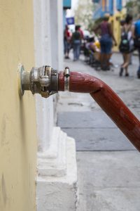 Studies began in 1980 to build wastewater treatment plants upstream from Havana Bay. Sadly, lack of funding was a major roadblock: the Cuban government doesn’t have the money to build them, so most were dropped. Moving the oil refinery away from the bay is an enormous and highly symbolic project. But with an estimated budget of 1.5 billion, making the shoreline livable with beaches, swimming areas, and sailing clubs is a dream that’s been put on hold. Still, a handful of projects are taking shape with funding from Spanish donors. One of our guests commented, “That’s the problem in developing countries; we need to modernize our infrastructure but there’s not enough funding.” In Havana’s streets, it’s a harsh reality. Water outages happen nearly every day. Some neighborhoods have been without running water for over two months. Tanker trucks deliver water to apartment buildings, hotels, and restaurants, giving priority to the heavily-touristed old town while neglecting residential neighborhoods. On the outskirts of Old Havana, in an alley with crumbling pavement, seven pipes stick out of the ground. Our guide, Michel, tells us, “This is where the tanker trucks fill up.” We’re not sure whether to laugh or cry.