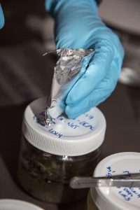 Now, it’s all hands on deck. The international research team is already at work, under the direction of scientific team leaders Hans Peter Arp and Carlos Manuel Alonso. I’m not sure how they make sense of the jumble of test tubes and jars. Meanwhile, First Mate Annelore Le Duff and Engineer Martin Gavériaux are on the aft deck, unraveling a tangle of lines ahead of this morning’s launch of Operation Manta. A Manta net is like a big butterfly net that we drag behind the boat for 30-45 minutes at slow speeds. The difference is that we’re collecting ocean water samples, not butterflies. We take the first sample less than a mile after exiting the port, and the researchers are thrilled with the mud-like substance that we haul aboard. Dr. Hans Peter Arp tells me, “See all the tiny blue and white dots in the algae and organic matter? Those are microplastics. They’re taking over the oceans, and we’re studying their impact on marine animals.” Meanwhile, the Cuban team led by Carlos Manuel Alonso is collecting marine sediment using a sort of “stainless steel spider” that they lower to the ocean floor on a plumb line. Carlos explains that analyzing marine sediment is just as important as analyzing water, because—contrary to what was believed in the past—the sediment houses a great deal of micro-waste particles that are harmful to the environment.
