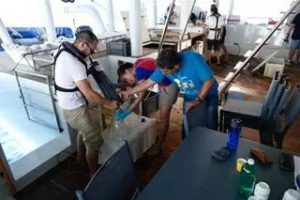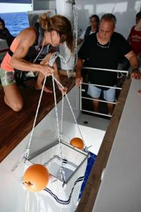 Together with the crew, I experienced three intense days of scientific research aboard the boat in the company of the mixed team of researchers made up of five Cubans and three Norwegians. We certainly didn’t stand idle… A 6 a.m. wake-up call, a quickly downed breakfast, the reception of local scientists (the Norwegians sleep aboard), the wait for clearance and the pilots (compulsory before each movement of the boat, hello red tape… Pascal loves it…!!), installation of the working surface on the aft platform and a trip out to sea for a mission that will go on until the evening with a minimalist-style break for lunch.