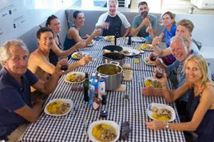 Once our fine second in command, Anne-Laure, has taken us to one side for a safety briefing, Bunny organises the shifts, cooking, cleaning and tidying, so life aboard takes on a degree of order…