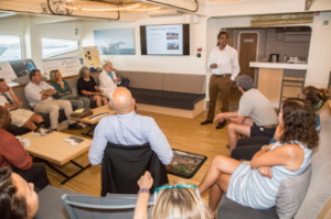 Race for Water Foundation president Marco Simeoni noted, “This meeting on board Race for Water was a rousing success, bringing together Sylvan Richards–Bermuda’s Minister of Environment and Planning, industry representatives, engineers, and local NGOs. These results have definitely motivated us to organize more sessions like this one!” One of the Foundation’s missions is to initiate a multi-stakeholder dialogue on plastics pollution, and then, to spark a movement—encouraging these stakeholders to work together to find solutions.