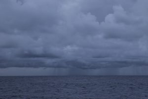 In terms of actually sailing the boat, we were running with the wind, and Pascal found a good compromise in terms of power. We raised the rear solar panels for maximum speed as the wind kicked up behind us. We steered Race for Water manually, rather than risk having the autopilot disengage and ending up broadside to a wave. At one point, we stalled out with the autopilot engaged when a 40-knot gust kicked up…and our punishment was a slap from a broadside wave. The impact to the hull was fairly intense, and Race for Water listed pretty dramatically.