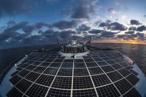 I’ve begun to realize that speed is a relative term. Three days ago, we sailed past a pretty good-sized migrating shark, maybe 25 feet long. The shark was moving at about the same speed as Race for Water. We could have stuck together for a while, but the shark was headed north and we were headed south. On board Race for Water we feel like we’re barely moving, but that shark will cover miles and miles at that slow and steady pace.