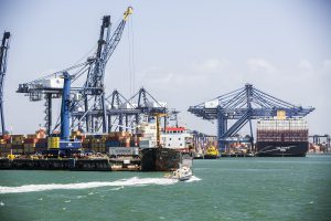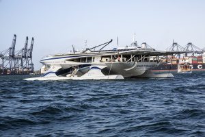 The Race for Water vessel in Colon harbour in Panama to go through the formalities required to negotiate the canal