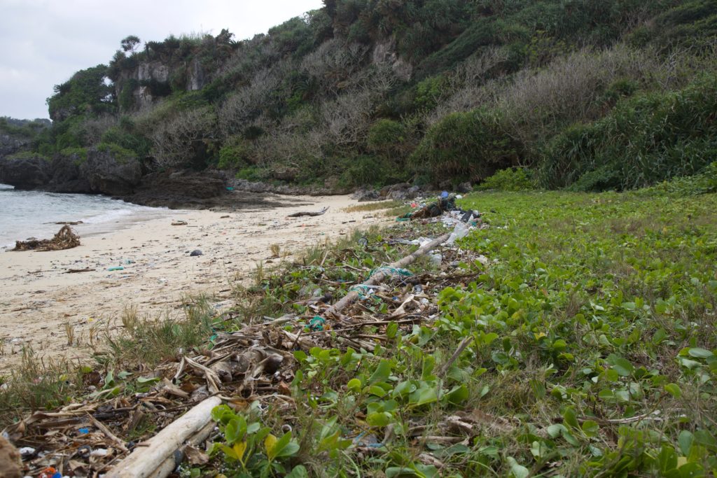 We then left for Idashichi Beach, a small beach popular with tourists in summer and turtles during the laying period. After winding our way along a narrow, poorly maintained and very green path, the beach came into view… What a horrible sight!!!
